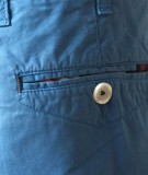 Pantalón tipo chino con bolsillos tipo francés, bolsillos traseros con cierre de botón.