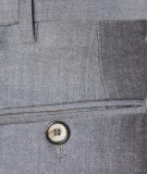 Pantalón con bolsillos laterales rectos, con relojera y bolsillos traseros con botón. Composición: 35% Lana, 55% Poliéster, 10% Mohair