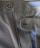 Pantalón con bolsillos tipo francés, bolsillos traseros con vivos al contraste y cierre de botón.